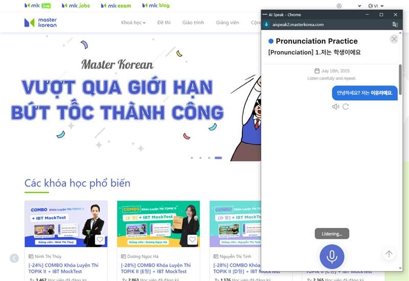 베트남 현지 한국어 교육 플랫폼인 Master Korean에도 오픈되었습니다.